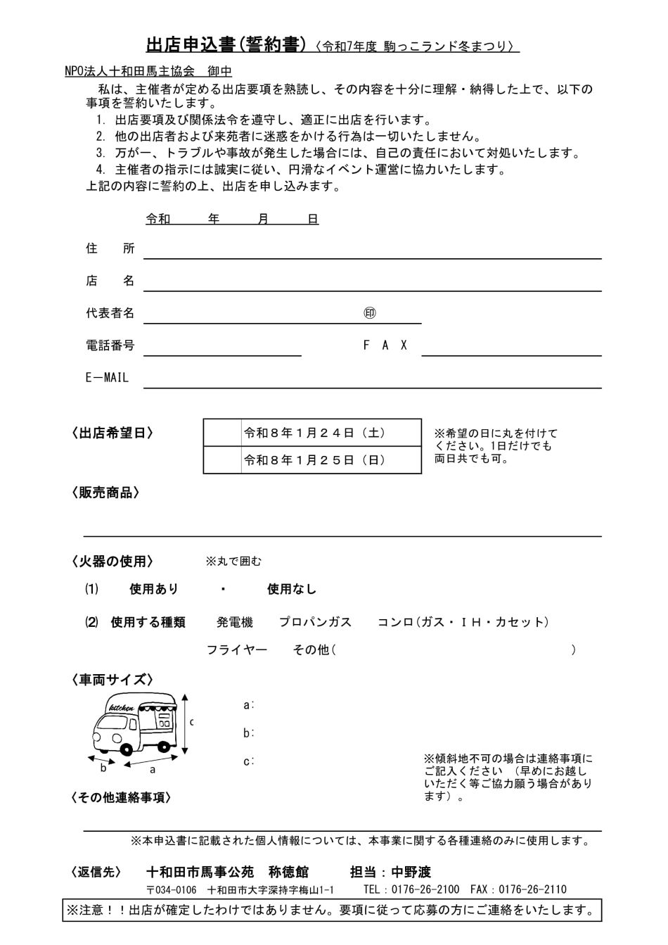 出店申込書(誓約書)(←クリックして開いてください)