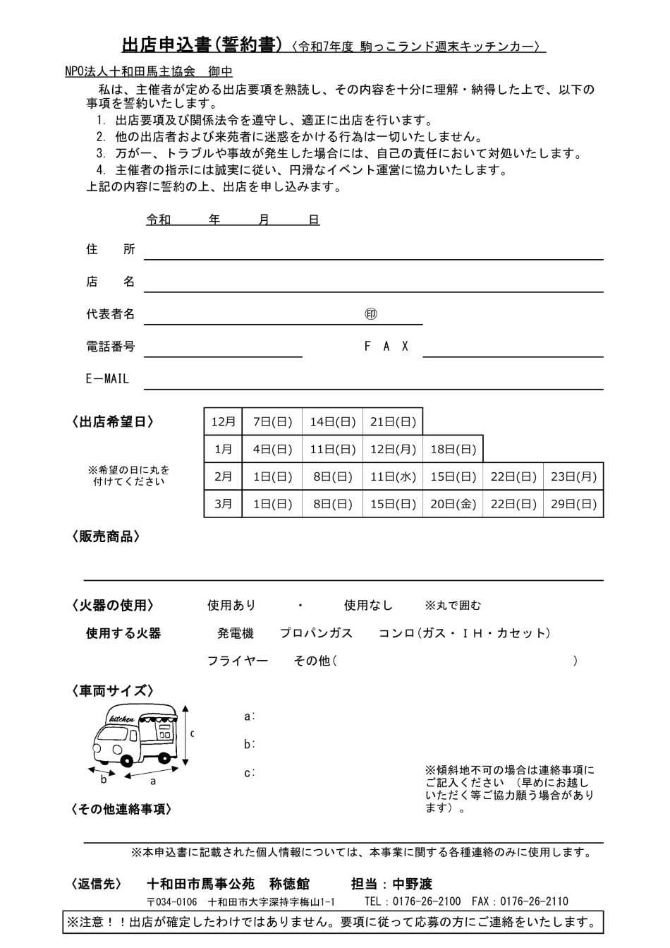 出店申込書(誓約書)(←クリックして開いてください)